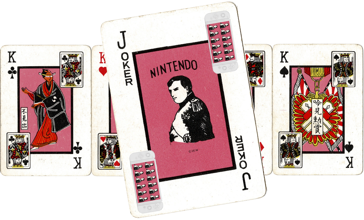 Nintendo Playing cards are adapted from early playing cards manufactured by Nintendo with current technology and brand characters. Card Images courtesy of © George Pollard https://games.porg.es/articles/cards/japan/hanafuda/traditional-manufacturers/